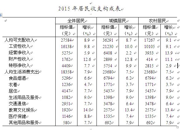 全体居民人均消费支出18358元,比上年增长7.9%,按常住地分,城镇居民人均消费支出23680元,增长7.5%;农村居民人均消费支出12052元,增长9.1%。年末,城镇居民家庭每百户拥有电冰箱109.6台,空调202.1台,移动电话249.5部,家用电脑98.4台,家用汽车53.1辆。农村居民家庭每百户拥有电冰箱104.3台,空调129.9台,移动电话242.7台,家用电脑59.2台。
