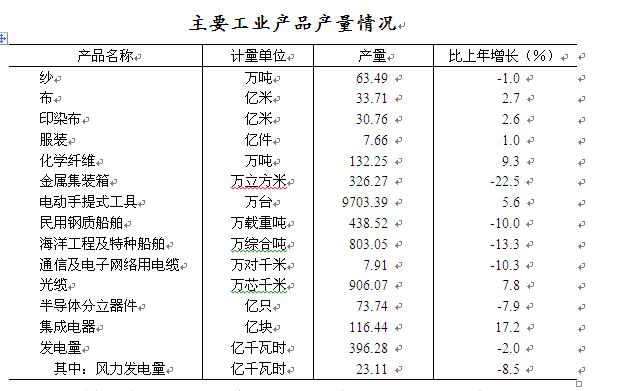 全市规模以上工业主营业务收入13350亿元,增长8.1%;利税总额1635.5亿元,增长11.3%;利润总额1027.7亿元,增长10.2%。亏损企业亏损总额40.5亿元,增长26.4%。