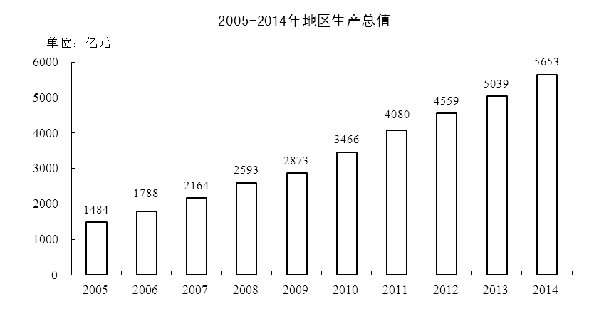 国民经济平稳增长。初步核算,全市实现生产总值②5652.7亿元,按可比价格计算,比上年增长10.5%。其中:第一产业增加值367.1亿元,增长3.5%;第二产业增加值2873.8亿元,增长10.3%;第三产业增加值2411.8亿元,增长11.9%。人均GDP达到77457元。